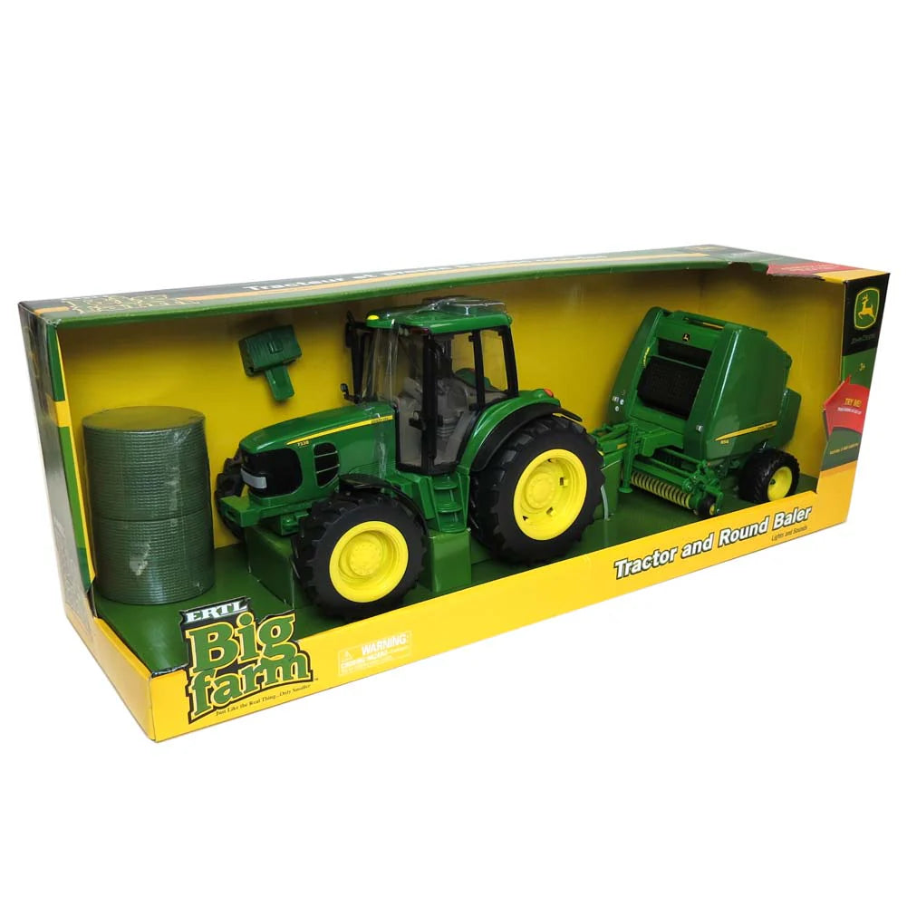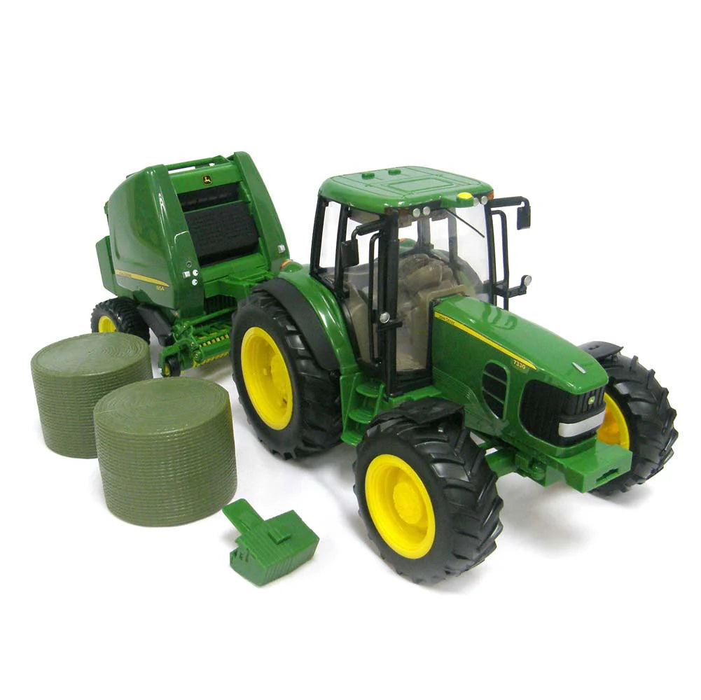John Deere 7330 w/ 854 Round Baler & 2 Bales (Big Farm) 1:16 Scale Model - ERTL 46180
