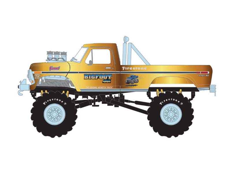 PRE-ORDER 1979 Ford F-250 Monster Truck – Gold Chrome w/ Bob Chandler Standing Figure (Kings of Crunch - Bigfoot #1 50th Anniversary) Diecast 1:18 Scale Model - Greenlight 13715