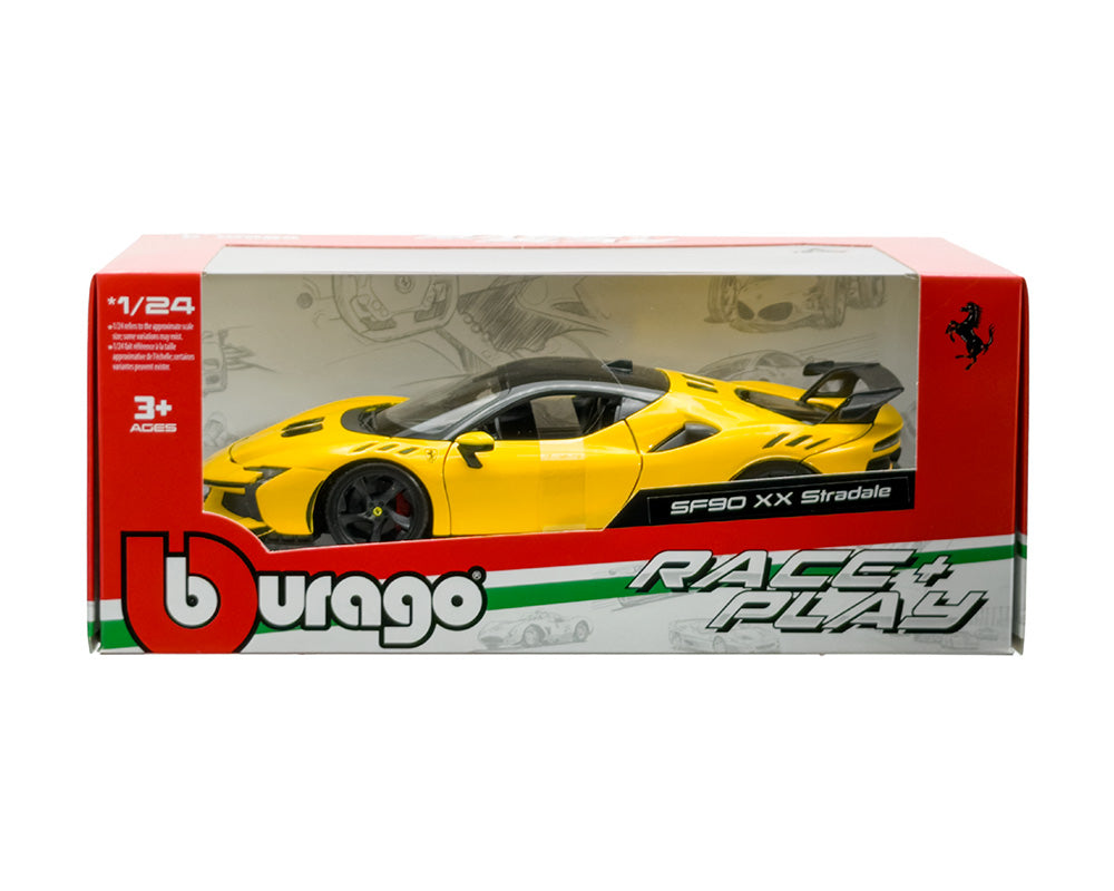 Ferrari SF90 XX Stradale – Yellow (Race and Play) Diecast 1:24 Scale Model - Bburago 26032YLW