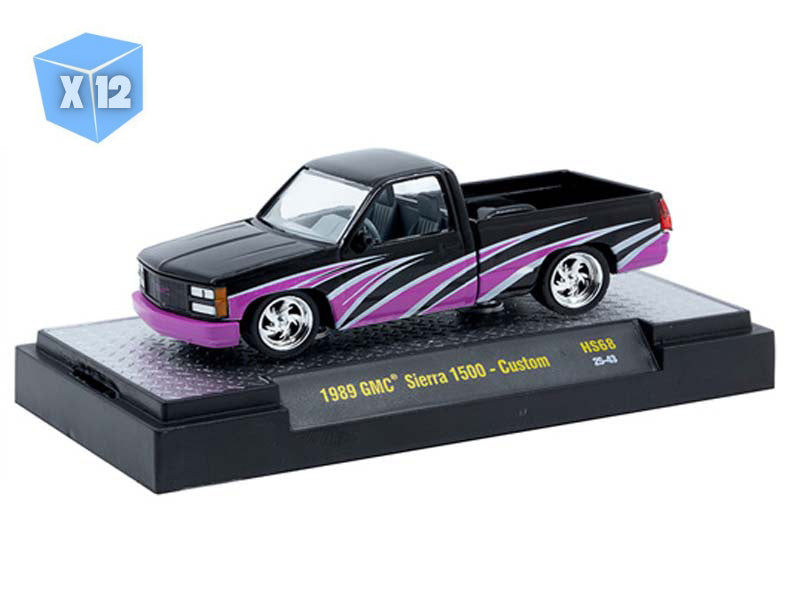 12 PACK 1989 GMC Sierra 1500 – Custom Black Pink Diecast 1:64 Scale Model - M2 Machines 31500-HS68