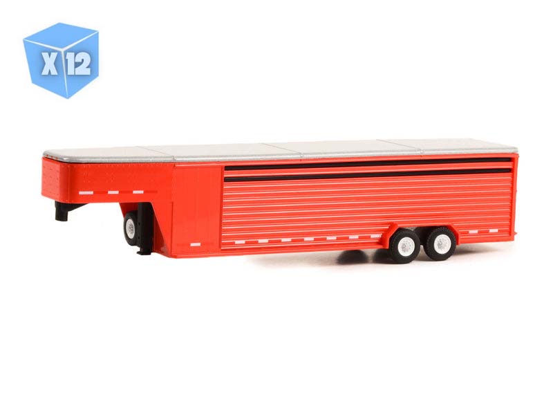 PRE-ORDER - 12 PACK 26-Foot Continuous Gooseneck Livestock Trailer - Red (Hitch & Tow Trailers) Diecast Scale 1:64 Model - Greenlight 30423