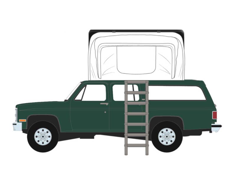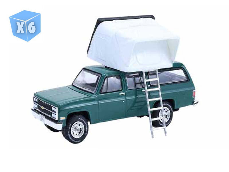 6 PACK 1990 Chevrolet Suburban - Green w/ Modern Rooftop Camper (The Great Outdoors Series 4) Diecast 1:64 Scale Model - Greenlight 38080E