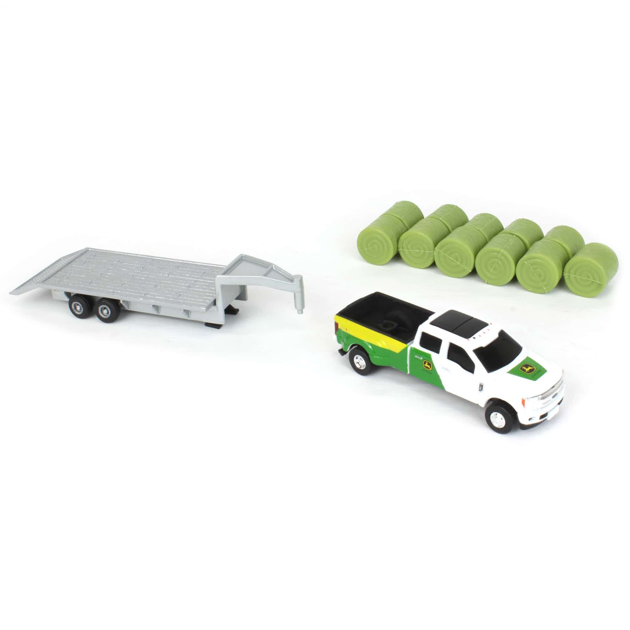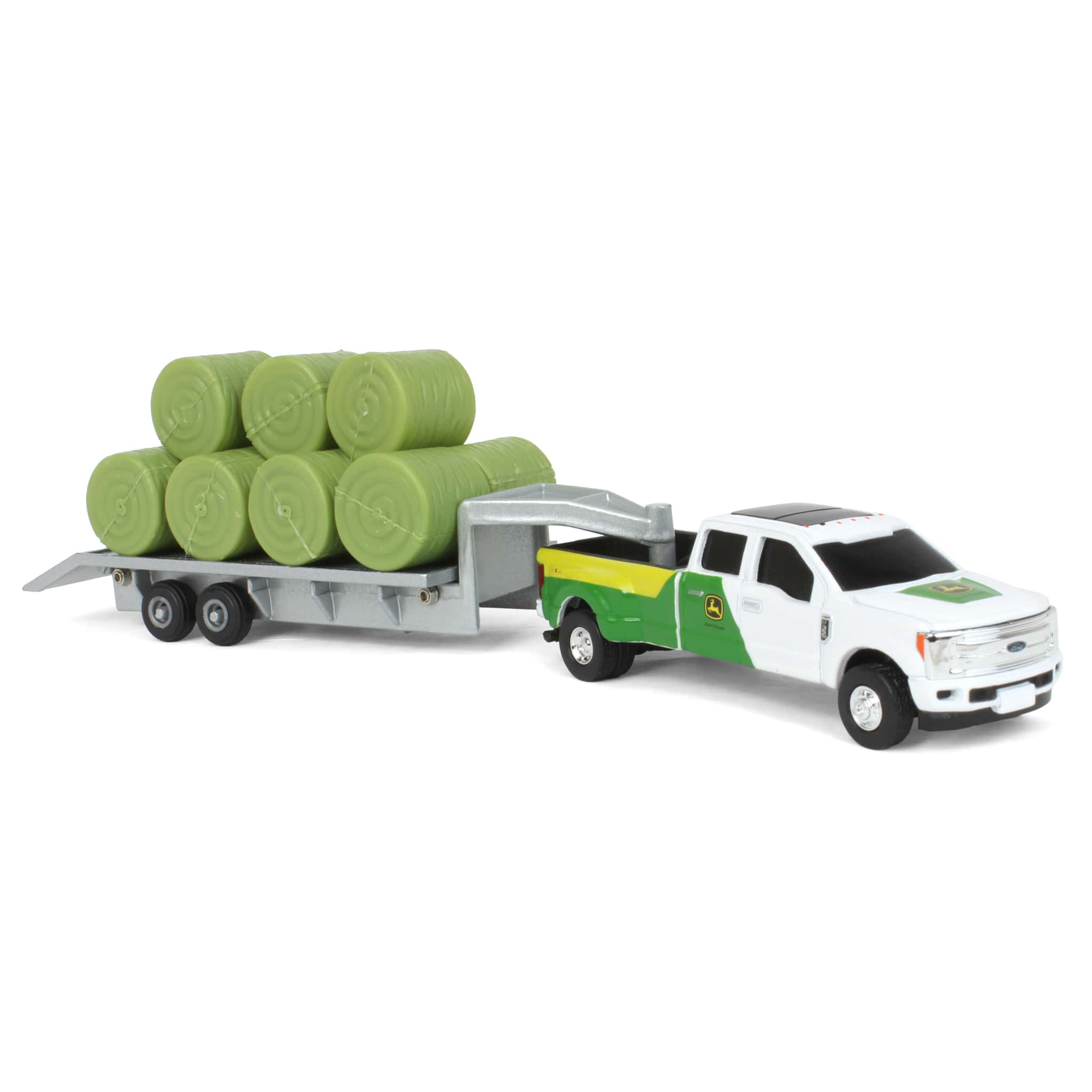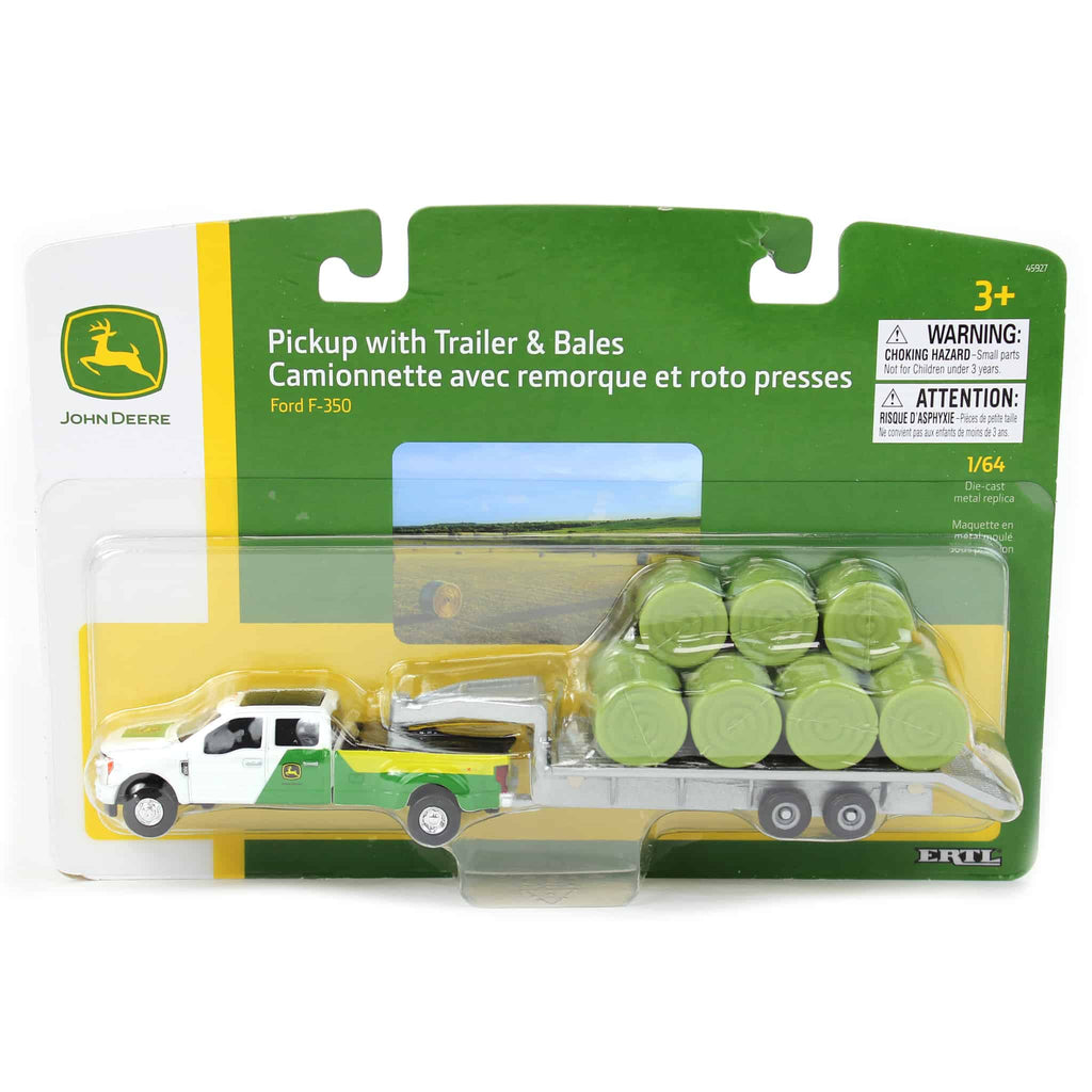 John Deere Ford F-350 Pickup & Trailer w/ 11 Round Bales Diecast 1:64 Scale Model - ERTL 45927