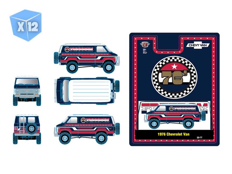 PRE-ORDER - 12 PACK 1976 Chevrolet Van FREEDOM EDITION – Red Diecast 1:64 Scale Model - M2 Machines 31500-HS78