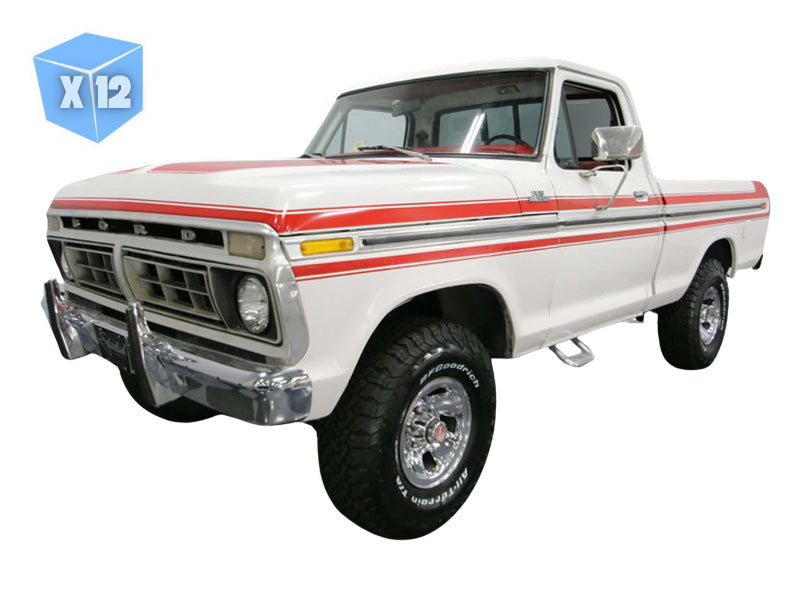PRE-ORDER - 12 PACK 1977 Ford F-150 – White w/ Orange Stripes Diecast 1:64 Scale Model - Greenlight 30574