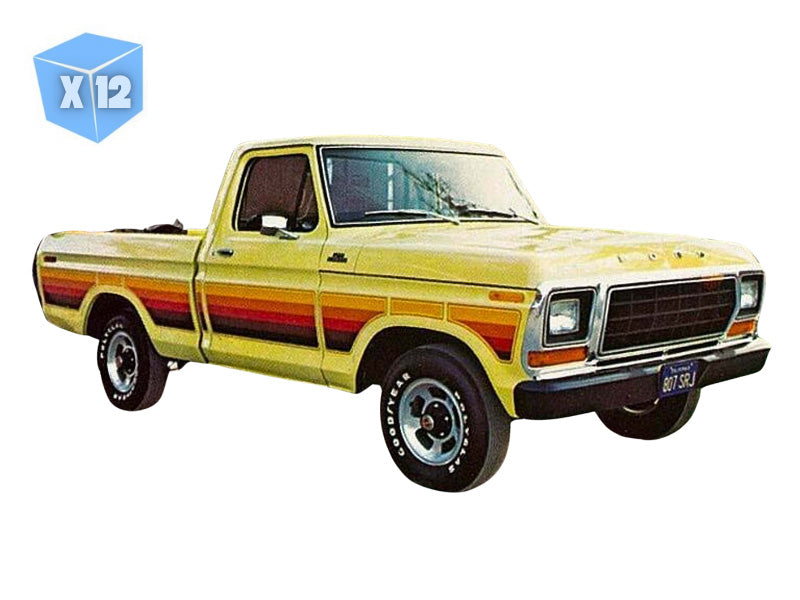 PRE-ORDER - 12 PACK 1978 Ford F-150 – Free Wheeling Stripes Edition – Yellow (Short Bed) Diecast 1:64 Scale Model - Greenlight 30573