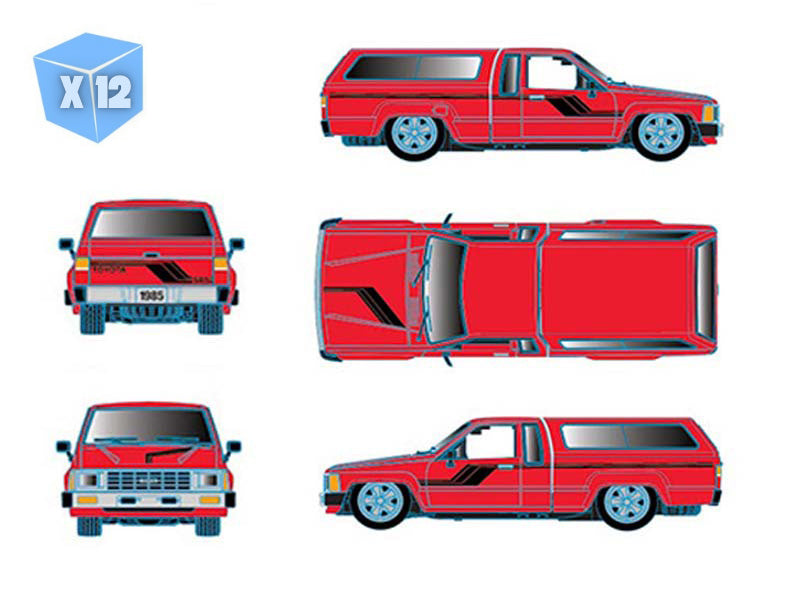 PRE-ORDER - 12 PACK 1985 Toyota Truck w/ Camper Shell – Red Diecast 1:64 Scale Model - M2 Machines 31500-HS76