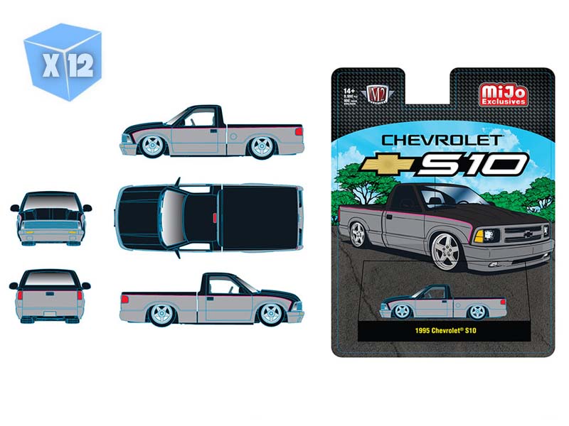 PRE-ORDER - 12 PACK 1995 Chevrolet S10 Custom -Silver w/ Black Two Tone Diecast 1:64 Scale Model - M2 Machines 31500-MJS100