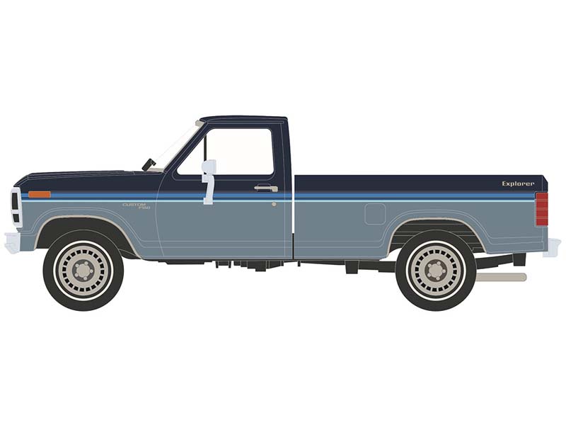 PRE-ORDER 1981 Ford F-150 Custom Explorer Short Bed Styleside 4x2 - Tu-Tone Midnight Blue Metallic and Medium Blue Glow Diecast 1:64 Scale Model - IXO IA64030
