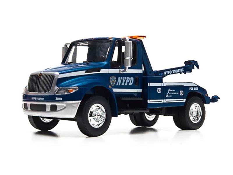 PRE-ORDER 2013 International Durastar 4400 NYPD Tow Truck - Blue & White Diecast 1:64 Scale Model - Greenlight 29767