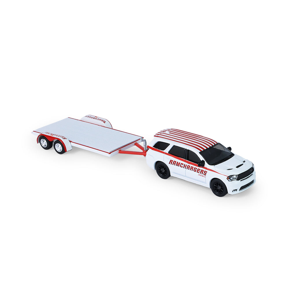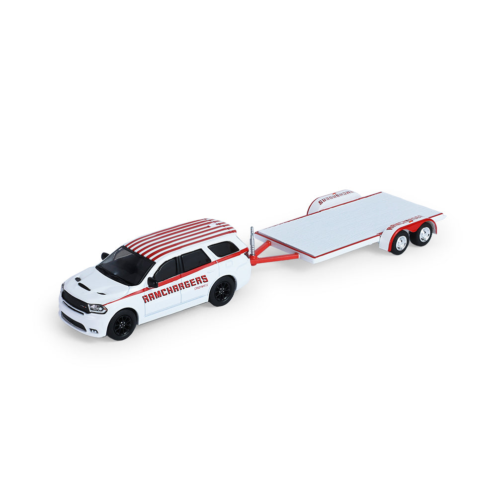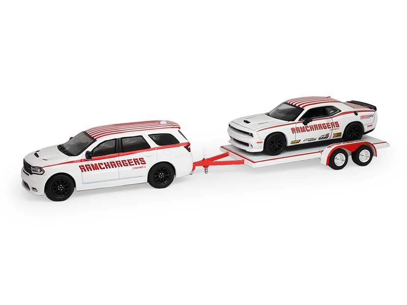 PRE-ORDER 2018 Dodge Durango and 2016 Dodge Challenger SRT/Hellcat w/ Flatbed Trailer (Racing Hitch & Tow Series 6) Diecast 1:64 Scale Model - Greenlight 31190B