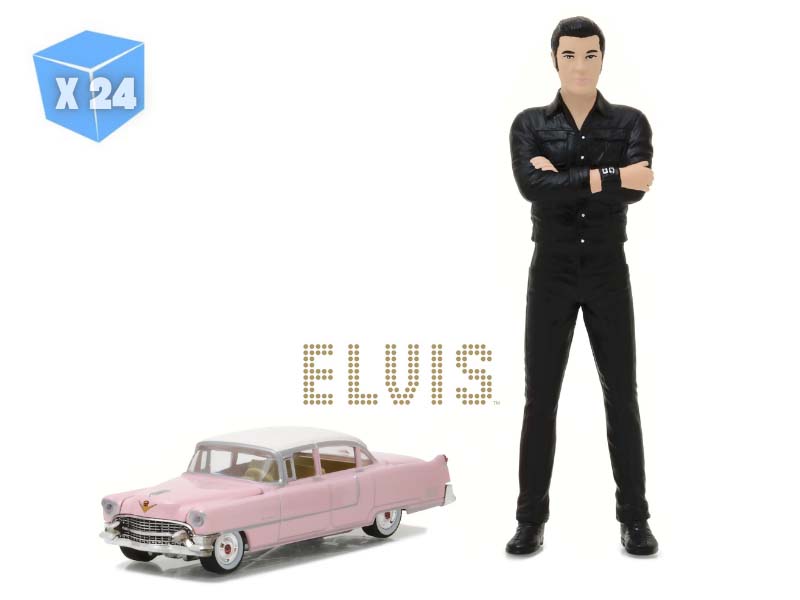 PRE-ORDER - 24 PACK Elvis Presley 1955 Cadillac Fleetwood Series 60 - Pink w/ 1:18 Elvis figure Diecast 1:64 Scale Model - Greenlight 29898
