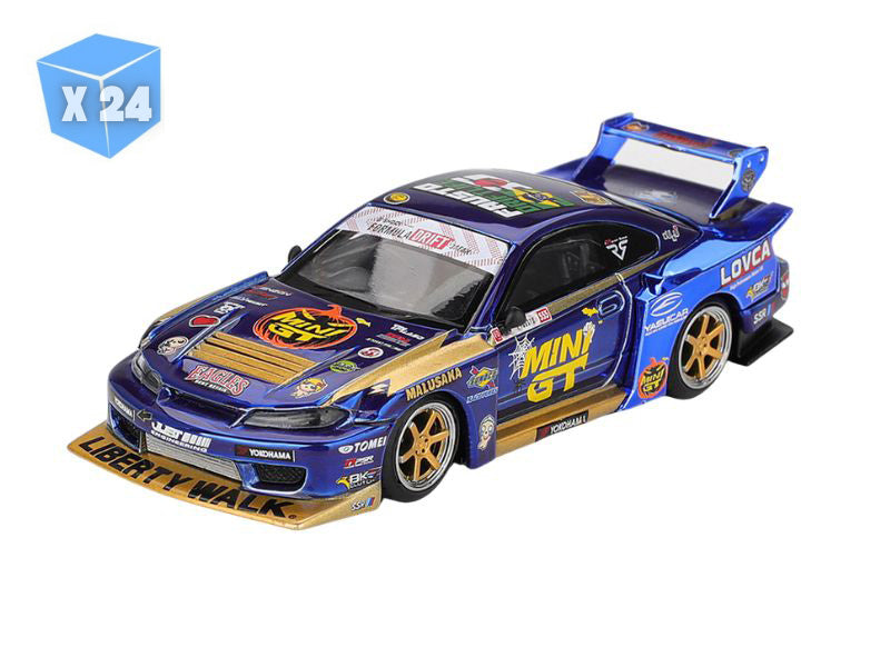 PRE-ORDER - 24 PACK Nissan LB-Super Silhouette S15 SILVIA #555 Team Liberty Walk 2025 Formula Drift Halloween Special – Chrome Blue (Mini GT) Diecast 1:64 Scale Model - TSM MGT01185