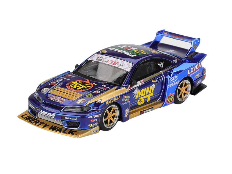 PRE-ORDER Nissan LB-Super Silhouette S15 SILVIA #555 Team Liberty Walk 2025 Formula Drift Halloween Special – Chrome Blue (Mini GT) Diecast 1:64 Scale Model - TSM MGT01185