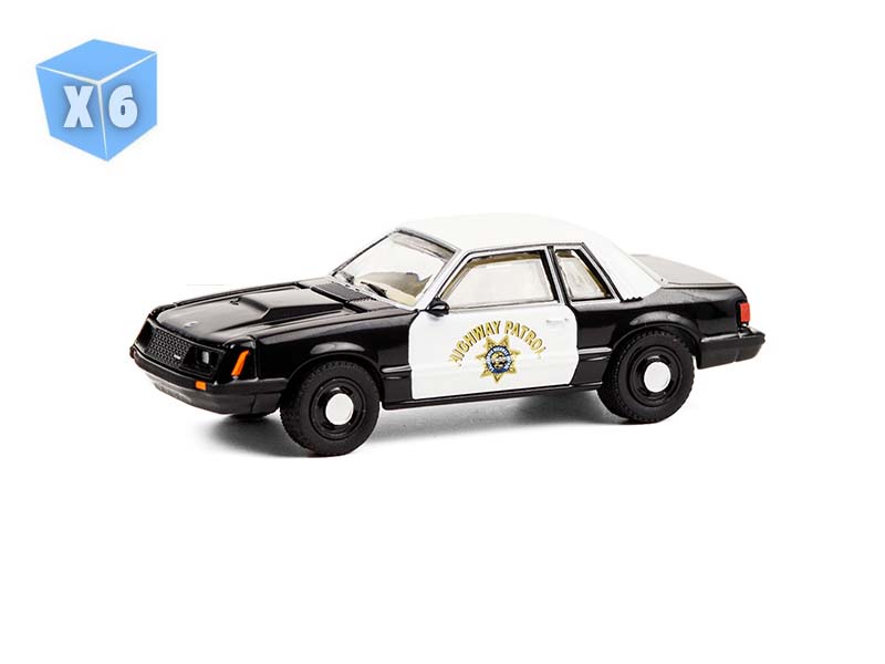 PRE-ORDER - 6 PACK 1982 Ford Mustang SSP Black and White CHP - California Highway Patrol (Hot Pursuit Series 36) Diecast 1:64 Scale Model - Greenlight 42930C