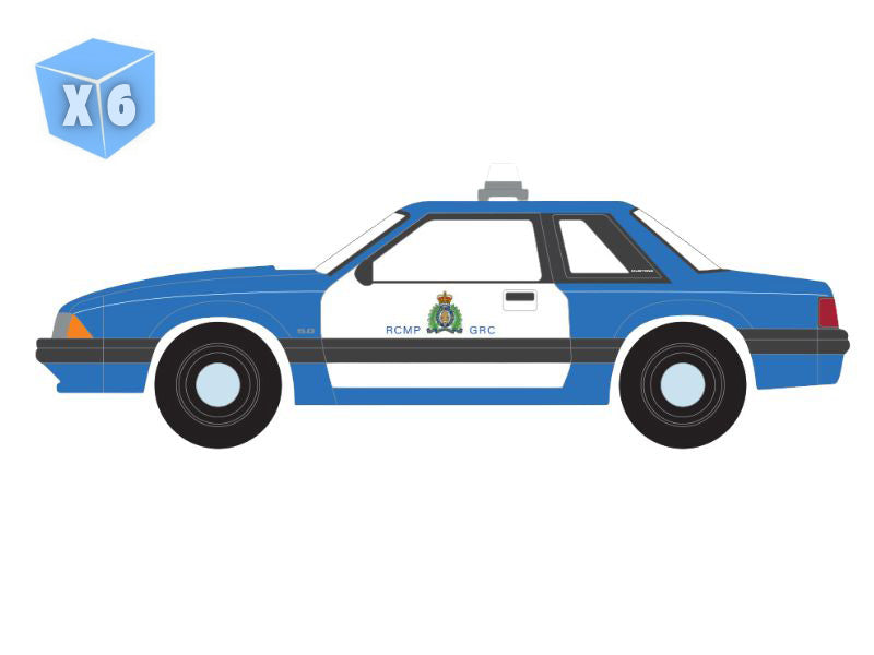 PRE-ORDER - 6 PACK 1991 Mustang - Royal Canadian Mounted Police (Hot Pursuit - Canada Special Edition) Diecast 1:64 Scale Model - Greenlight 43065A