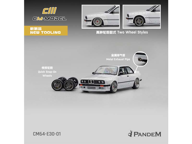 PRE-ORDER Pandem BMW M3 E30 – Pearl White Diecast 1:64 Scale Model - CM Model CM64-E30-01