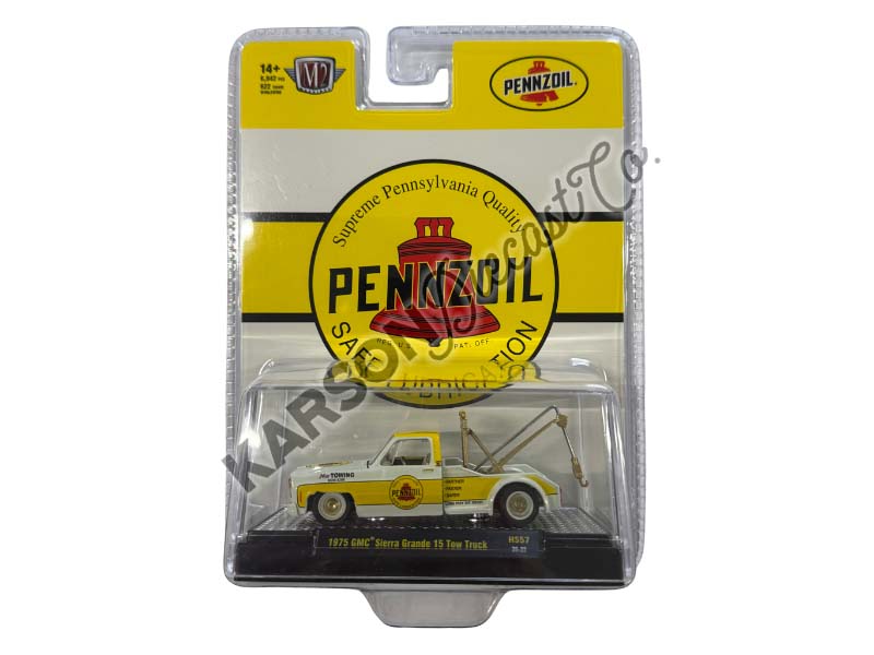 CHASE 1975 GMC Sierra Grande 15 Tow Truck Penzoil – Yellow Diecast 1:64 Scale Model - M2 Machines 31500-HS57