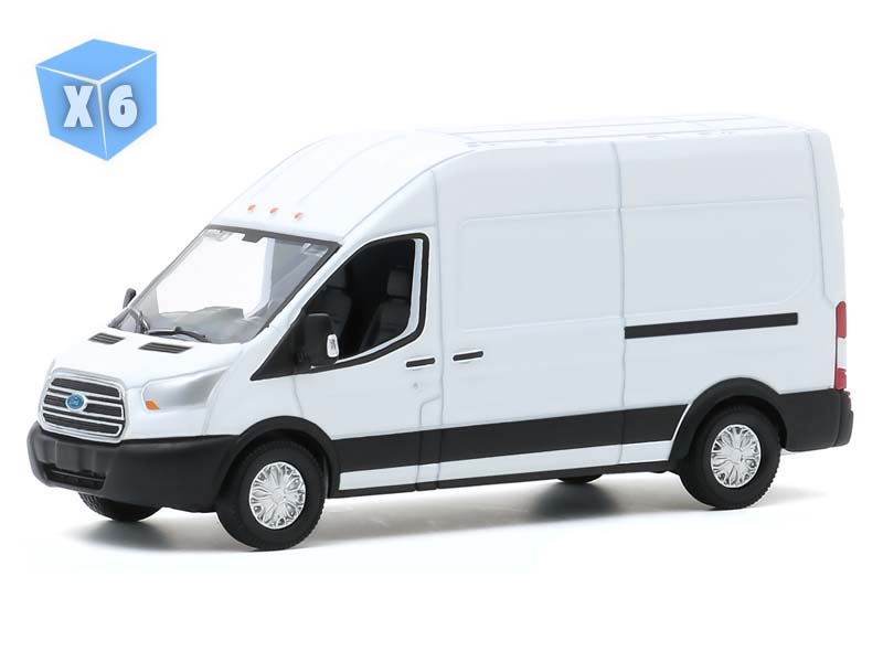 6 PACK 2015 Ford Transit High Roof Van - Oxford White (Route Runners Series 1) Diecast 1:64 Scale Model - Greenlight 53010A
