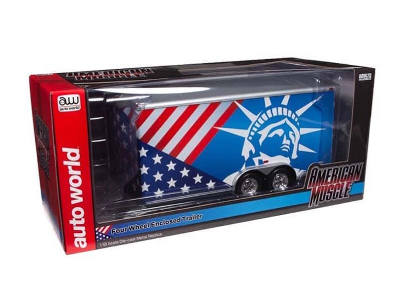 Patriotic Four Wheel Enclosed Trailer Diecast 1:18 Scale Model - Auto World AMM1284