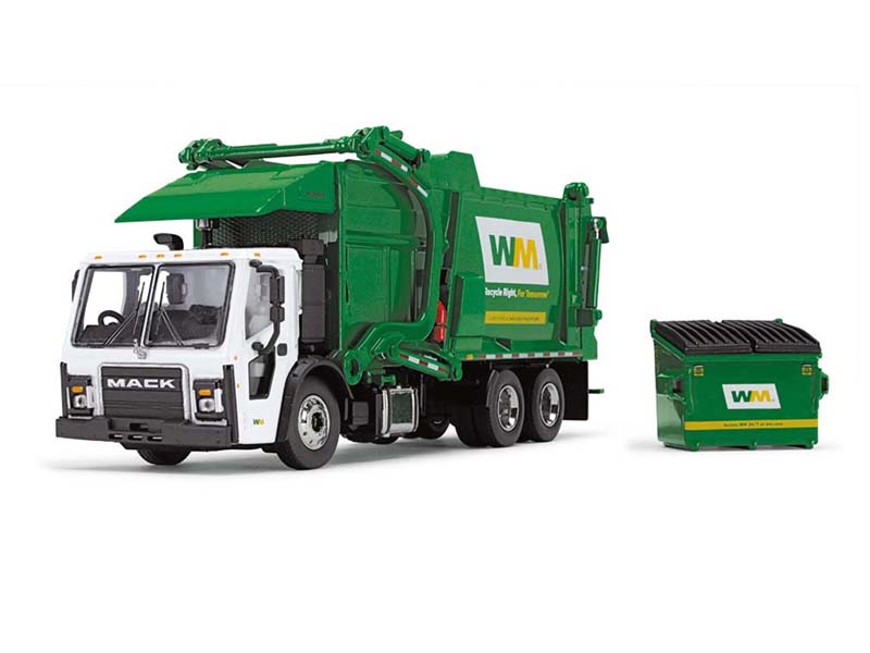 Mack LR w/ McNeilus Meridian Front Load Refuse Truck and Trash Bin (Waste Management) Diecast 1:64 Scale Model - First Gear 60-1796D