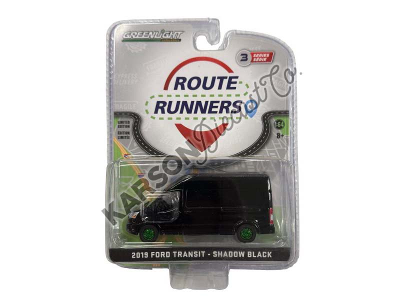 CHASE 2019 Ford Transit LWB High Roof - Shadow Black (Route Runners Series 3) Diecast 1:64 Scale Model - Greenlight 53030C