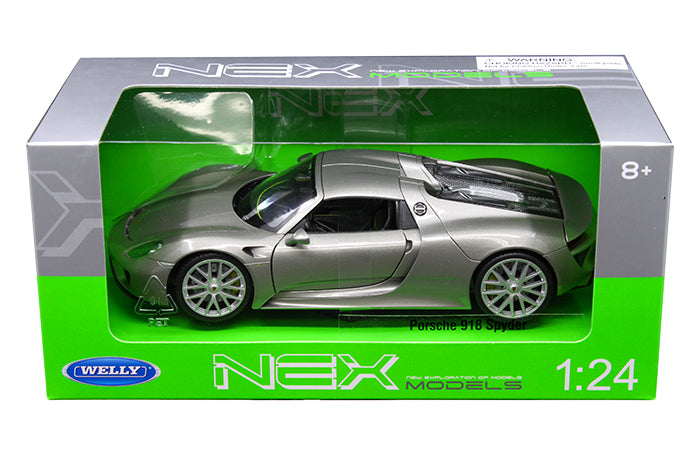 Porsche 918 Spyder Hard Top - Silver (NEX) Diecast 1:24 Scale Model - Welly 24055SIL