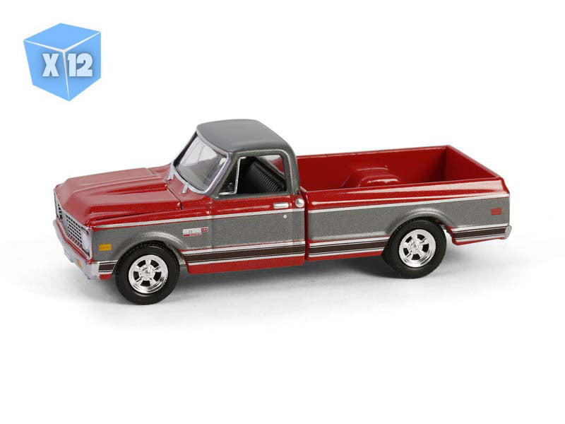 12 PACK 1972 Chevy Cheyenne C10 Short Bed – Electric Blue and Gunmetal Gray Diecast 1:64 Scale Model - Greenlight 30567