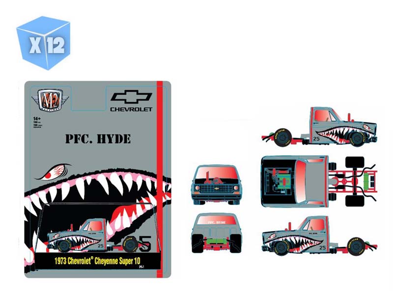 24 PACK 1973 Chevrolet Cheyenne Super 10 Custom Re Styling – Blue Diecast 1:64 Scale Model - M2 Machines 31500-HS71