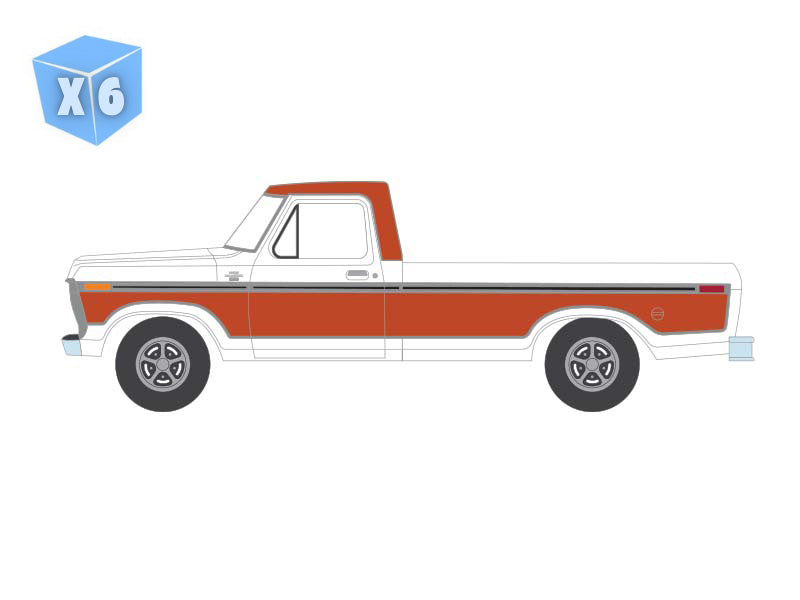 6 PACK 1977 Ford F150 Ranger XLT - Orange & White (All-Terrain Series 17) Diecast 1:64 Scale Model - Greenlight 35310D