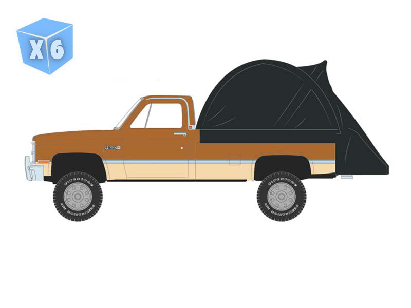 6 PACK 1986 GMC Sierra Lifted - Desert Sand & Doeskin Tan w/ Modern Truck (The Great Outdoors Series 4) Diecast 1:64 Scale Model - Greenlight 38080B