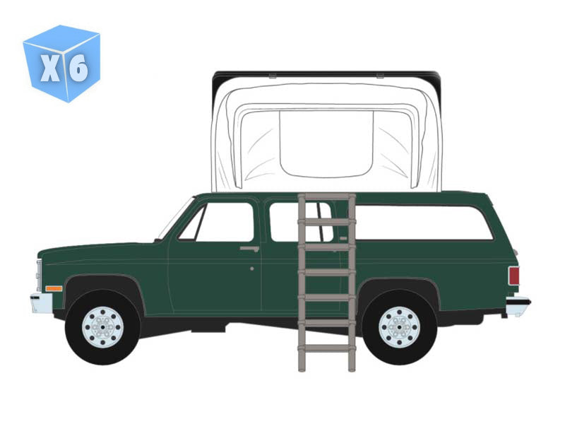 6 PACK 1990 Chevrolet Suburban - Green w/ Modern Rooftop Camper (The Great Outdoors Series 4) Diecast 1:64 Scale Model - Greenlight 38080E
