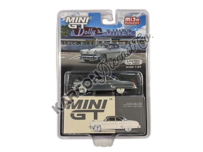 CHASE 1954 Lincoln Capri – Arctic White / Atlantic Blue – Mijo Exclusives (Mini GT) Diecast 1:64 Scale Model - TSM MGT00631