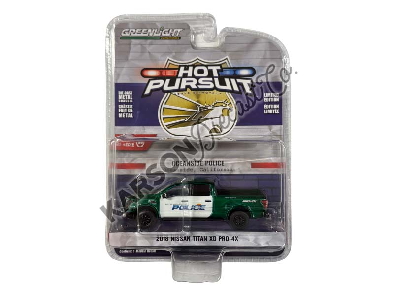 CHASE 2018 Nissan Titan XD Pro-4X - City of Oceanside California Police (Hot Pursuit Series 39) Diecast 1:64 Scale Model - Greenlight 42970E