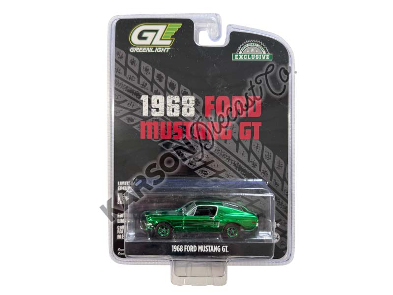 GREEN CHROME CHASE 1968 Ford Mustang GT Fastback - Highland Green Diecast 1:64 Scale Model - Greenlight 44723