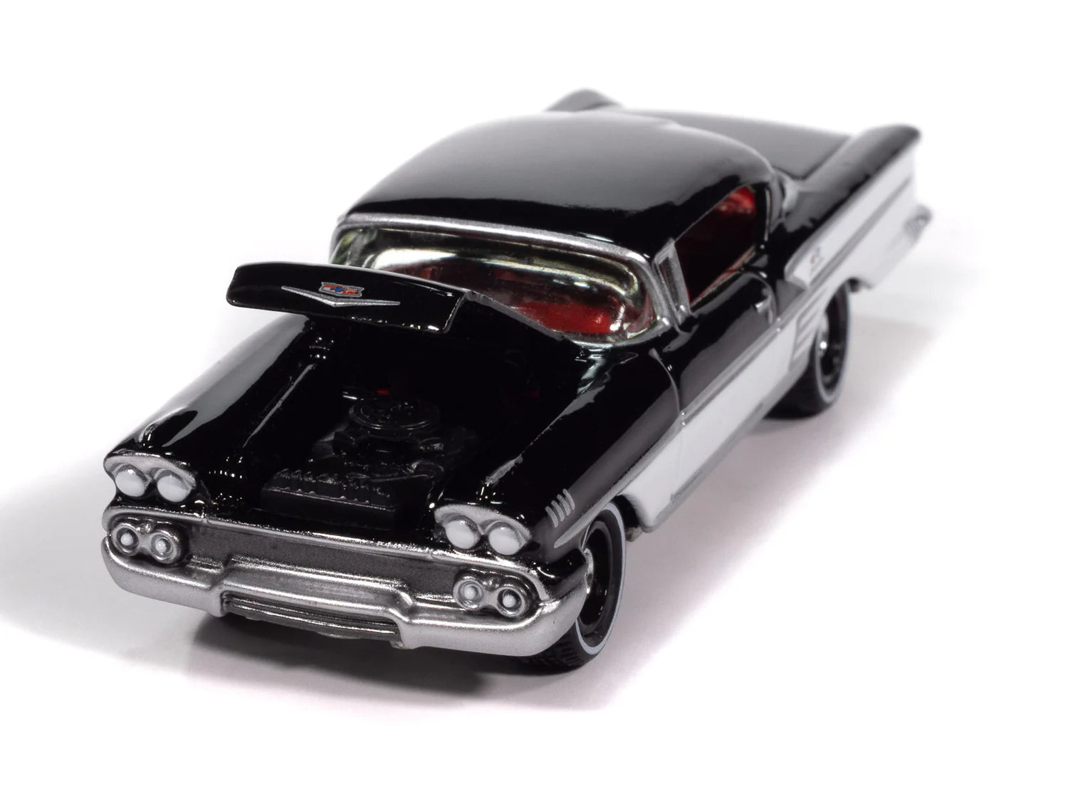 1958 Chevy Impala (Onyx Black w/ White Sides) w/ Collector Tin Diecast 1:64 Scale Model - Johnny Lightning JLCT017