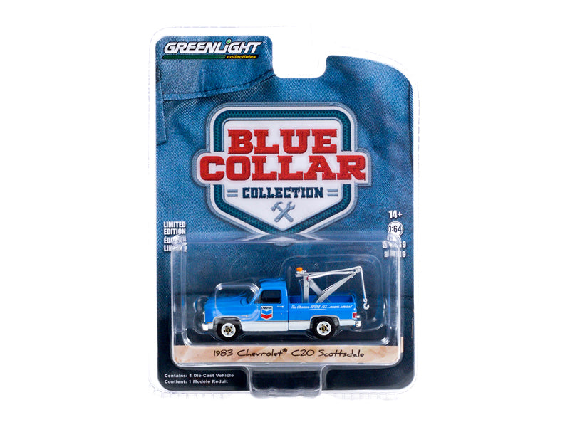 1983 Chevrolet C20 Scottsdale w/ Drop-in Tow Hook (Blue Collar) Series 9 Diecast 1:64 Scale Model – Greenlight