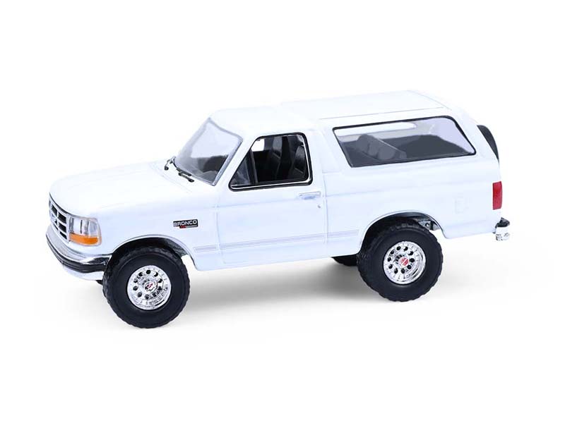 GREEN CHROME CHASE 1993 Ford Bronco XLT Oxford White Diecast 1:64 Scale Model - Greenlight 30452