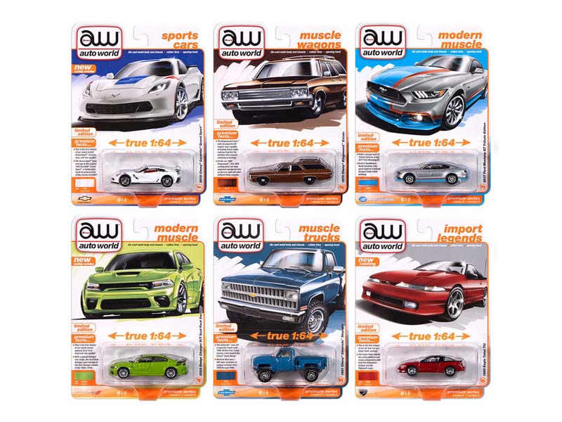 Premium 2025 Release Version A SET OF 6 Diecast 1:64 Scale Models - Auto World AW64502A