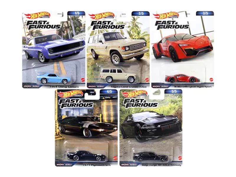 Fast & Furious Premium 2025 L Assortment SET OF 5 Diecast 1:64 Scale Models - Hot Wheels HNW46-956L
