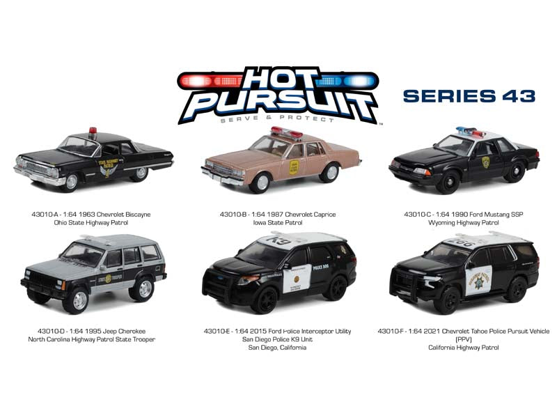 (Hot Pursuit Series 46) SET OF 6 Diecast 1:64 Scale Models - Greenlight 43040