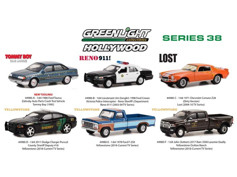 (Hollywood Series 43) SET OF 6 Diecast 1:64 Scale Models - Greenlight 62040