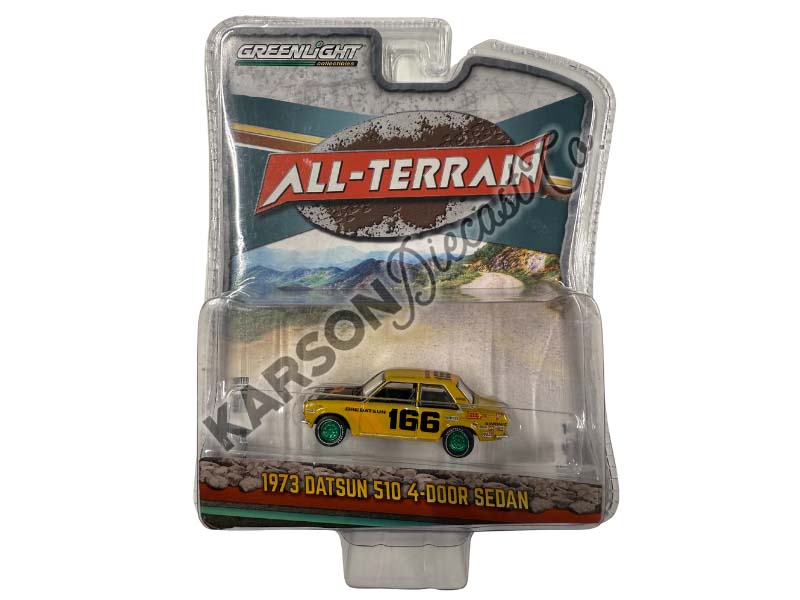 CHASE 1973 Datsun 510 4-Door Sedan - #166 Brock Racing Enterprises BRE (All-Terrain) Series 13 Diecast 1:64 Scale Model Car - Greenlight 35230B