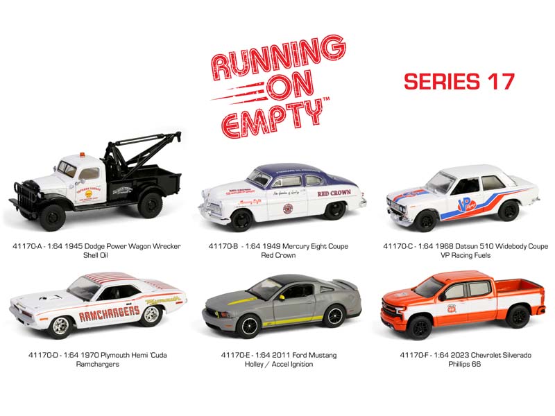 (Running on Empty Series 17) SET OF 6 Diecast 1:64 Scale Models - Greenlight 41170