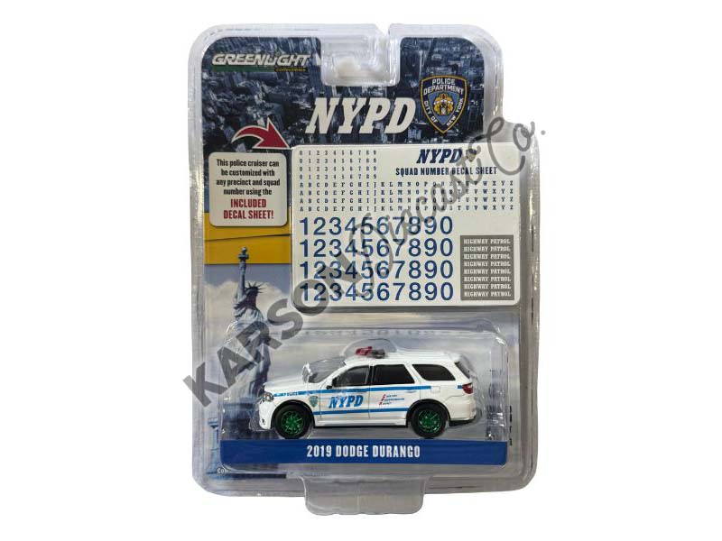 CHASE 2019 Dodge Durango - NYPD w/ NYPD Squad Number Decal Sheet Diecast 1:64 Scale Model - Greenlight 42775