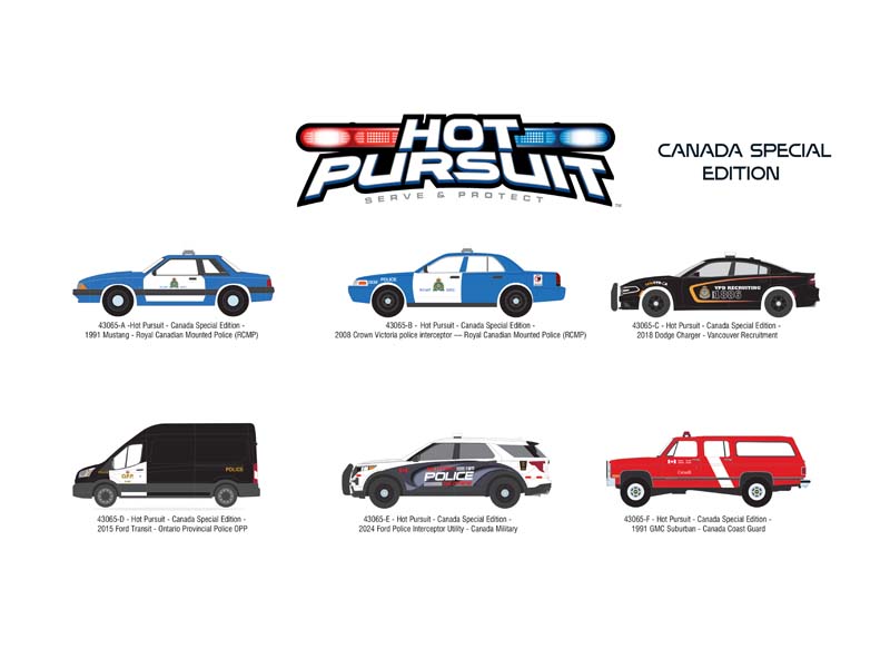 PRE-ORDER (Hot Pursuit - Canada Special Edition) SET OF 6 Diecast 1:64 Scale Models - Greenlight 43065