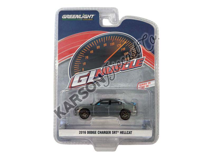 RAW CHASE 2016 Dodge Charger SRT Hellcat – B5 Blue (GreenLight Muscle Series 28) Diecast 1:64 Scale Model - Greenlight 13350D