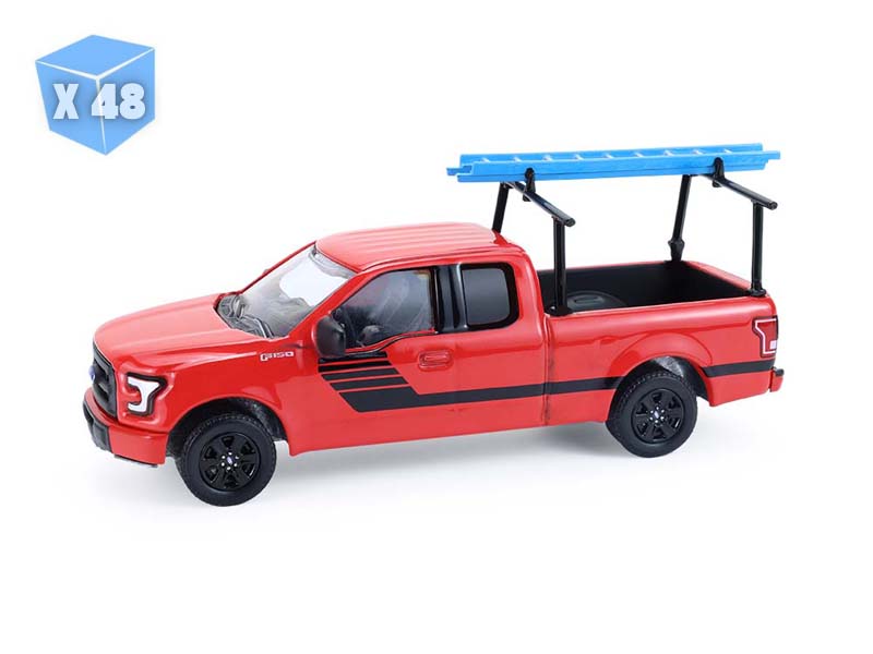 48 PACK 2015 Ford F-150 w/ Ladder Rack - Red (Down on the Farm Series 11) Diecast 1:64 Scale Model - Greenlight 48110E