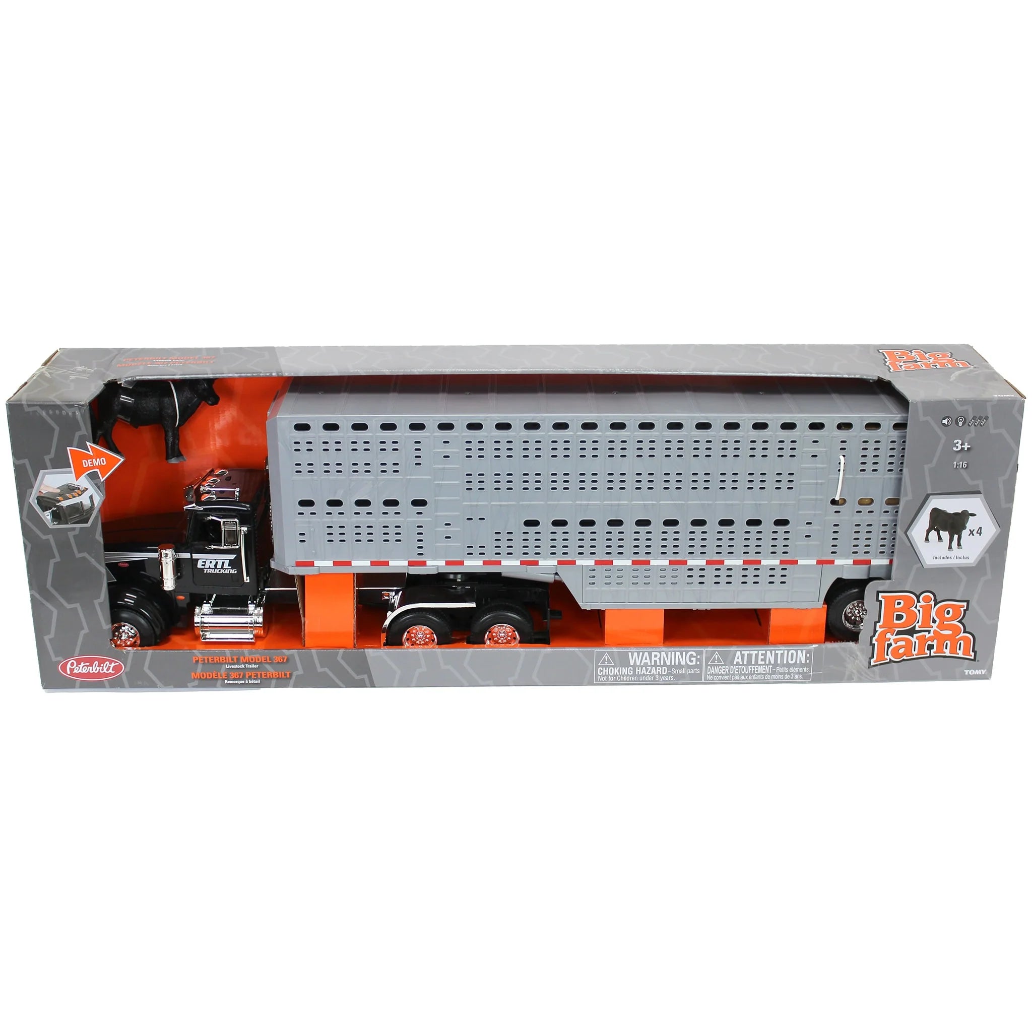 Peterbilt 367 Semi Truck w/ Livestock Trailer & 4 Cows (Big Farm) 1:16 Scale Model - ERTL 47600