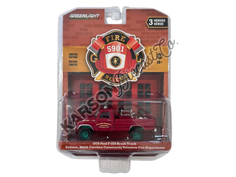 CHASE 1978 Ford F-250 Brush Truck - Fallston Community Fire Department Unit 226 (Fire & Rescue Series 3) Diecast 1:64 Scale Model - Greenlight 67030C